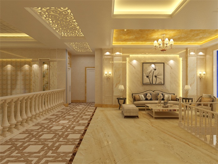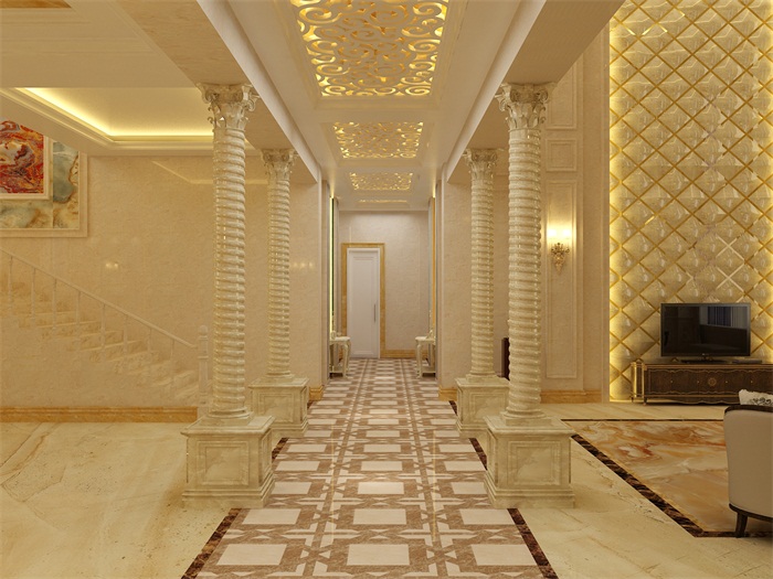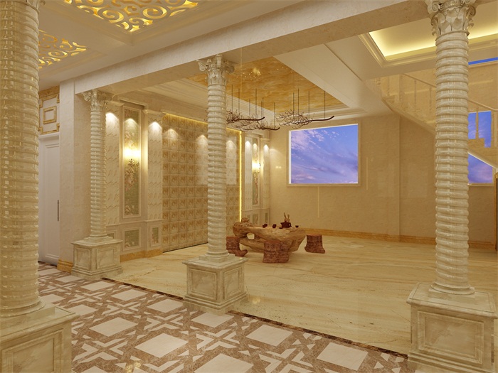 冰珀板石塑線條仿大理石羅馬柱樓梯間