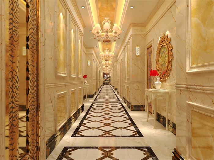 冰珀板石塑線條仿大理石長廊